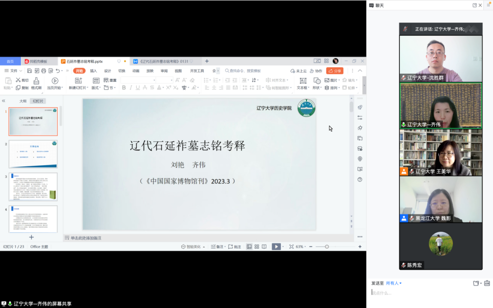 在研讨会上,辽宁大学米兰(中国)一站式服务平台王美华教授和黑龙江大学历史文化旅游米兰平台院长魏影教授对“古代东北边疆与民族”工作坊的规划与设想以及本次工作坊的具体活动进行了介绍。学者们以“辽代的墓志铭考释与渤海国中枢体制研究”和“金代家族史和清代盛京地区水运”为主题进行了讨论交流。整场活动学术氛围浓郁,参与者既感受到了学术研究的魅力,又在思想的碰撞和观点的切磋中增进了学问。