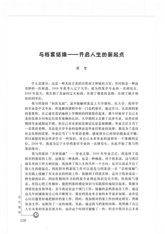 蒋贺(06级硕士)-《与档案结缘--开启人生的新起点》