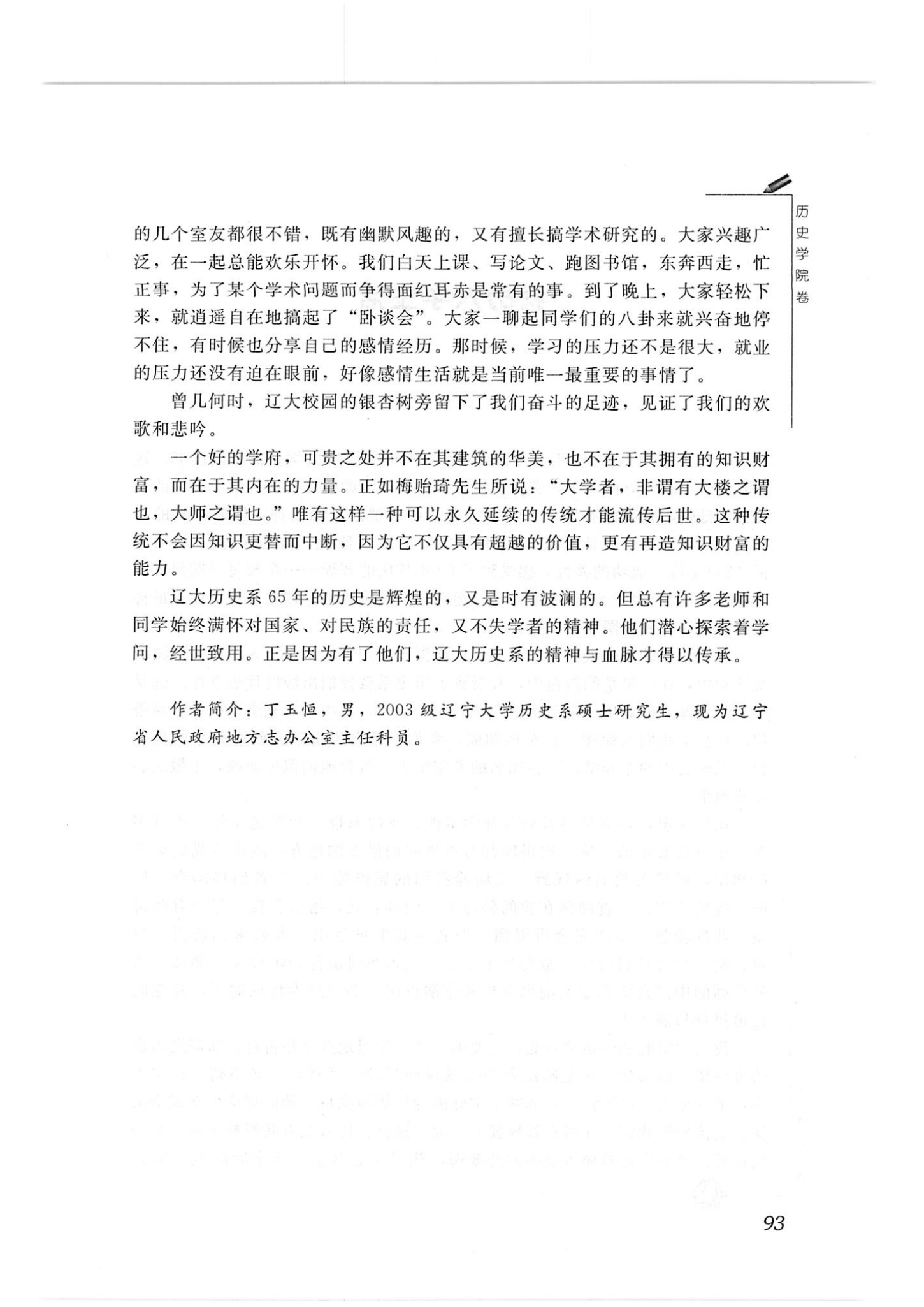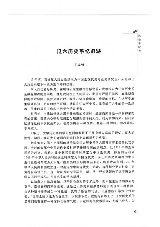 丁玉恒(03级硕士)-《辽大历史系忆旧游》